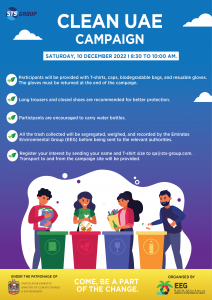 STS Group, under the patronage of the Ministry of Climate Change and Environment (MoCCAE) and in association with the Ministry of Community Development, volunteered in the 21st cycle of the nationwide Clean UAE campaign held in Dubai on Saturday, 10 December. The waste clean-up campaign, organised by the Emirates Environmental Group (EEG), aims to bring together different sectors of the community with the shared ambition to promote sustainable development in the region. Towards this end, EEG has designed a set of nationwide programmes of which one of the most well-known is Clean UAE. This campaign has been successfully encouraging residents over the years to adopt eco-friendly practices.